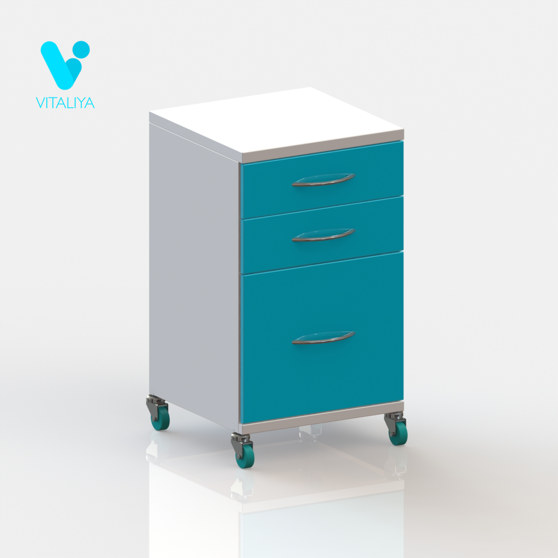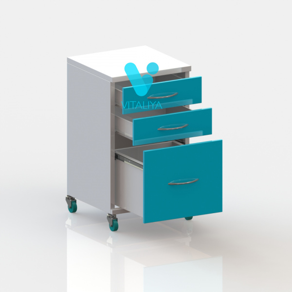 - Тумба изготовлена на колёсах 50 мм, 2 колёса с тормозом
